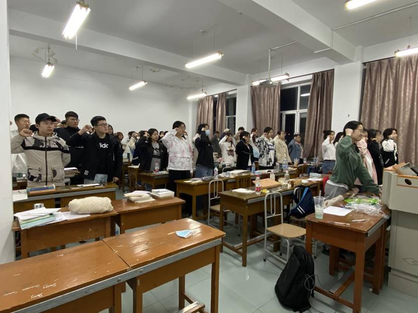 重温入团誓词,践行青春誓言。活动最后,全体团员共同宣誓。团员们在宣誓的过程中,个个精神饱满、激情满怀。在这铿锵有力的宣誓中,团员们更加以身为共青团员而感到自豪! 同学们更加正视团员身份,明确自身责任,不忘初心,积极为团组织建设贡献自身力量。