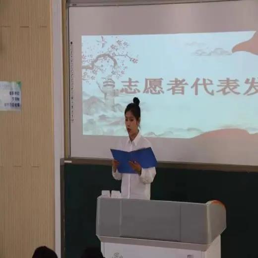 有一种精神叫奉献,有一种使命叫担当,有一种英雄叫榜样,防疫优秀志愿者代表王羽贺,假期支教优秀个人代表王池、先进个人代表李辰曦向同学们分享了她们的志愿感言。她们表示会继续刻苦学习积极参加实践和志愿服务,在服务社会、服务他人的过程中,锤炼自己,查找不足,为和谐社会建设做出自己的贡献。