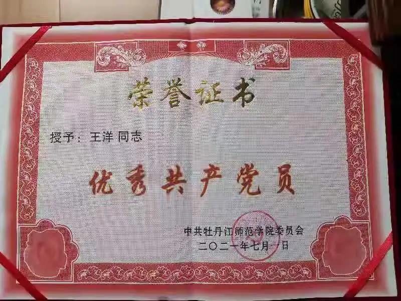 在思想上,王洋同志积极参加政治理论学习活动,学习先进思想,按时汇报思想动态,定期开展自我批评,曾作为学院团总支副书记,积极协助辅导员进行思想建设活动;在学生工作上,曾担任学院团总支副书记,协调团总支部门的各项工作,深入同学之中,了解同学所思所想,定期汇报,能够在老师和同学间发挥桥梁与纽带作用,作为教育科学学院教心育才志愿服务队队长,2018、2019年连续两年参加暑期三下乡社会实践服务活动,获志愿服务先进集体、先进个人荣誉称号,积极参与爱心家教志愿服务活动,取得良好的效果,在疫情期间,帮助乡镇基层工作人员进行扫码测温;作为班级团支书,积极带领班级同学开展多项专业活动,与同学关系融洽,待人真诚,能够发挥党员先锋模范作用,曾获得牡丹江师范学院“三好学生”、“优秀学生干部”、“优秀共青团干部”、“优秀共青团员”、第五、第六届黑龙江省互联网+大学生创新创业大赛银奖;在学习、就业上,学习成绩优异,勤奋刻苦,多次获得专业奖学金,2021年成功考取黑龙江省委选调生。