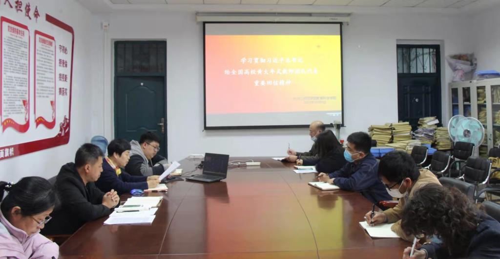 会议第一项关于学习贯彻“习近平总书记给全国高校黄大年式教师团队代表重要回信精神”。教育科学学院副院长李树平教授领学,在宣读重要回信精神通知时,李树平教授强调:回信充分体现了以习近平同志为核心的党中央对广大教师的亲切关怀和特殊厚爱,深刻阐释了教育工作和教师工作的极端重要性,立意高远、内涵丰富、情深意切、催人奋进。作为教师的我们定要深刻领会习近平总书记重要回信精神中对广大教师提出的“四有”好老师、“四个引路人”“大先生”等期望要求一脉相承,切实把广大教师的思想和行动统一到回信精神上来。教育科学学院的教师们认真听会,仔细记录,切实贯彻思想,领悟精神。将以实际行动为依托真正把为学、为事、为人统一起来,当好学生的引路人。